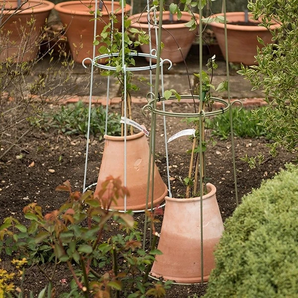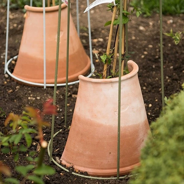 Clematis prefer a cool, relatively moist root run, so these terracotta protectors, which help shade their roots from the sun, will help get newly planted clematis off to a better start.