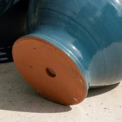 Classically styled teal blue bellied terracotta pot handmade by skilled artisans in South Wales. Mixing sturdy solidity with refined elegance, we like them paired up for striking statement plants in prominent spots.