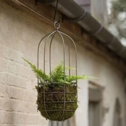 Where traditional hanging baskets lend themselves to cascading plants, these enclosed plant armatures make the perfect foil for smaller climbing displays too.
