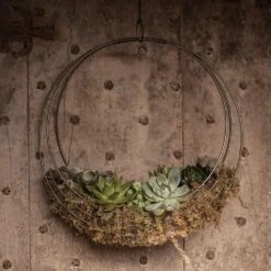 This unique circular wreath basket can be lined with sphagnum moss and planted up with small succulent sedums or striking geometric rosettes of sempervivum to create a spectacular living wreath.