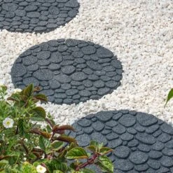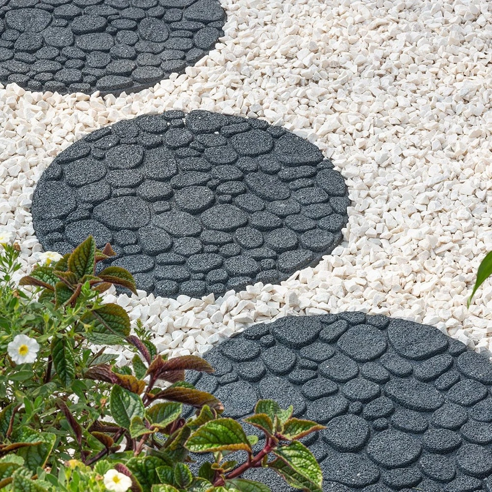 Slip-resistant and comfy underfoot, these recycled rubber stepping stones make it easy to install an attractive walkway on the lawn or anywhere in the garden.