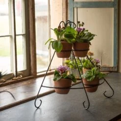 Forged from solid steel, this sturdy freestanding pot stand is a great way to green up small spaces. With 6 pot rings arranged over two tiers, it adds height, creates a focal point and lets you enjoy more plants in a small area.